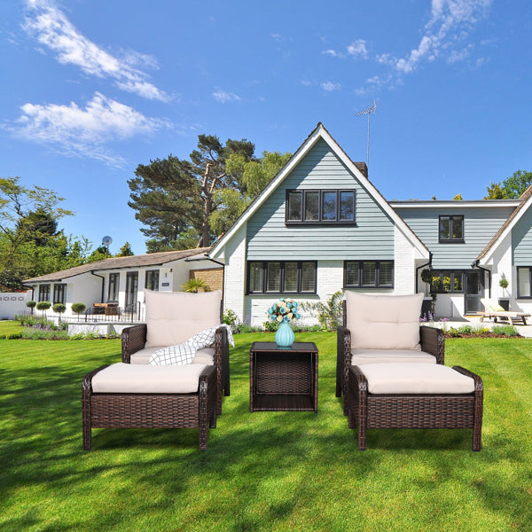 This Five-Piece Rattan Set is the best choice for you. It's designed for the outdoors. It's of great furniture to decorate your garden. The classic yet simple design made it look great in any setting. This set is a beat useful furniture for you. It has comfortable sofas you can sit on it to enjoy your leisure time. The space-saving design makes your garden delicate. You will like it so what are you still waiting for?