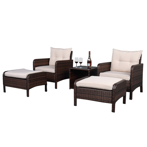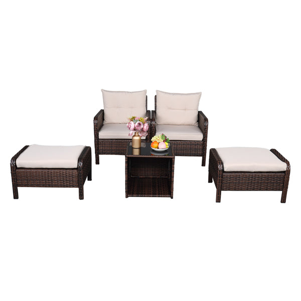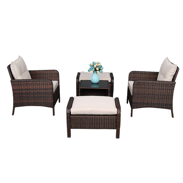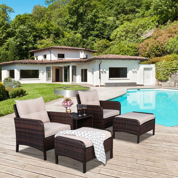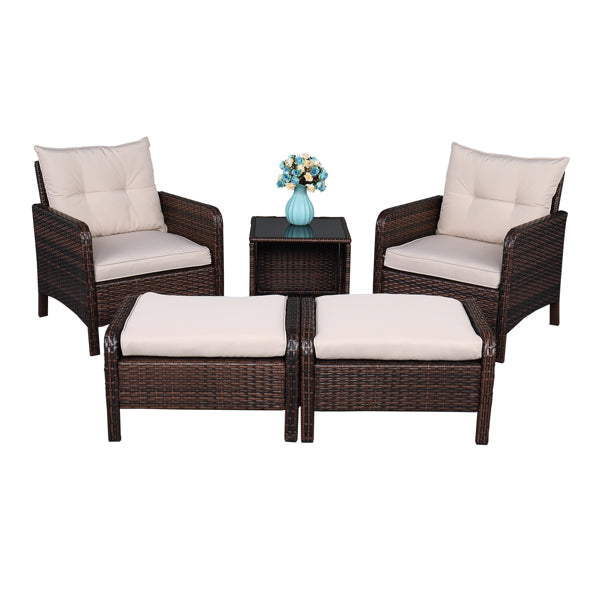 5 Piece Wicker Conversation set - Five-Piece Rattan Set - 2 Single Sofa - 2 Footstool - 1 Coffee Table Round Corner